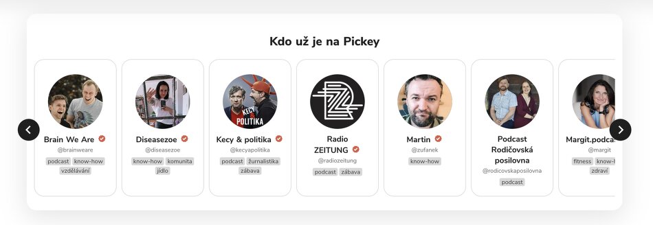 Pickey je placená služba, dalo by se říct i sociální síť, která propojuje autory textů, fotografií, videí nebo podcastů na zcela libovolná témata s jejich fanoušky. Ti mají možnost si exkluzivní obsah svých oblíbených tvůrců předplácet.