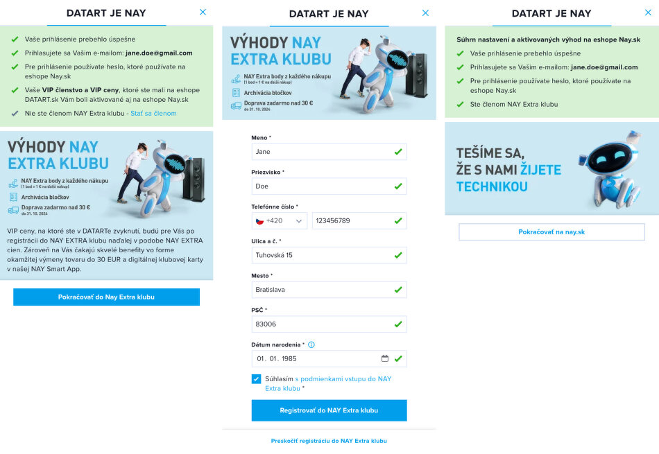 - pro Datart.sk zákazníky, kteří byli ve VIP klubu, připravili i VIP výhody na Nay.sk e‑shopu