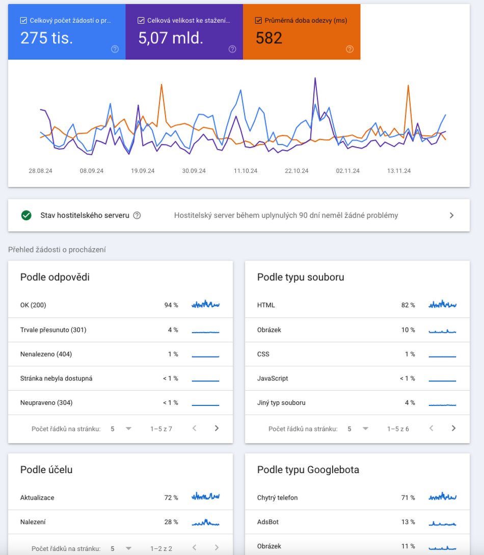 V další části statistik se dostáváme do techničtějších informací, které jsou však neméně důležité. Hlavním důvodem, proč tyto statistiky sledovat, je to, že zde velmi často můžete odhalit nedostatky vašeho webu, o kterých jste neměli ani tušení a přitom vám v SEO velmi škodí.