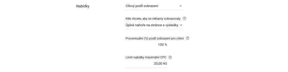Google věří, že budoucnost je v automatizaci. Proto mimo již uvedené nové metriky máme nyní možnost využít smart bidding strategii „Cílový podíl zobrazení“. V nastavení strategie zadáme, zda chceme cílit na „Kdekoliv na stránce“, „V horní části stránky s výsledky“, nebo na „úplně nahoře na stránce s výsledky“. U každého nastavení cílení dále určujeme % podíl pro cílení a nabídku maximálního cpc, abychom měli kontrolu nad náklady. Google poté výšku bidů optimalizuje podle námi zadaných pravidel. Více o tom, jak funguje smart bidding strategie se dozvíte také v nápovědě Google.