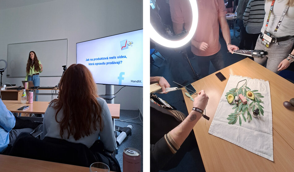 Alena Vetchá vyrazila na školení produktových reels. V první části workshopu nám Martina Nečasová naservírovala základní pravidla, která se při tvorbě reels vyplatí dodržovat a prozradila, co z její praxe funguje a co ne. Ve druhé půlce nás už nešetřila 😀 Rozděleni do skupin, vybaveni světly a dalšími rekvizitami jsme měli za úkol všechny poznatky převést do praxe. Vzhledem k časové dotaci 1 hodina to byla poměrně výzva, které jsme se ale zhostili s vervou a se ctí. Výsledkem bylo 5 velmi povedených reels na produkty z řad kosmetiky nebo čokolády.