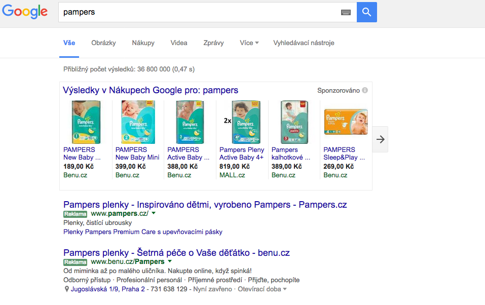 Ukázka kombinace kampaní v Google Nákupech a ve vyhledávání