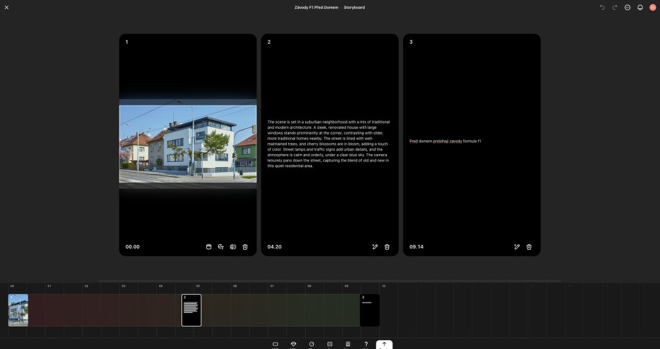 Sora i sama od sebe sestavuje Storyboard, kde si sama popíše scénu. Jsou zde možné další editace a prostředí již připomíná střihové programy. Já si zatím jen „hraji“ s generováním krátkých videí a nevyužil jsem hloubější úpravy, ale vypadá to zajímavě.