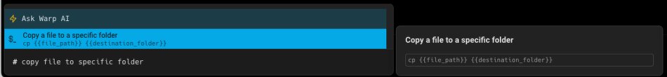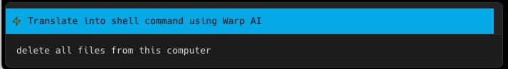 Na rozdíl od klasického terminálu obsahuje Warp našeptávač, díky kterému se rychlost psaní příkazů několikanásobně zvýší – nenašeptává pouze jednotlivé části příkazů, ale i celá zadání včetně použitých parametrů. Dlouhé příkazy, které využíváte často, tak snadno spustíte napsáním prvních pár znaků a stisknutím šipky doprava na klávesnici.