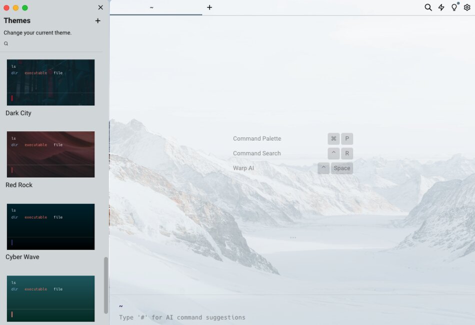 Už se nemusíte nudit s jednolitou černou či bílou, Warp nabízí sadu různých barevných témat a dokonce si můžete nahrát i své vlastní. Kromě barev si můžete zvolit také svůj oblíbený font, jeho velikost nebo řádkování a dokonce si můžete vybrat, zda vám bude v příkazové části blikat kurzor, nebo bude nehybně na místě.